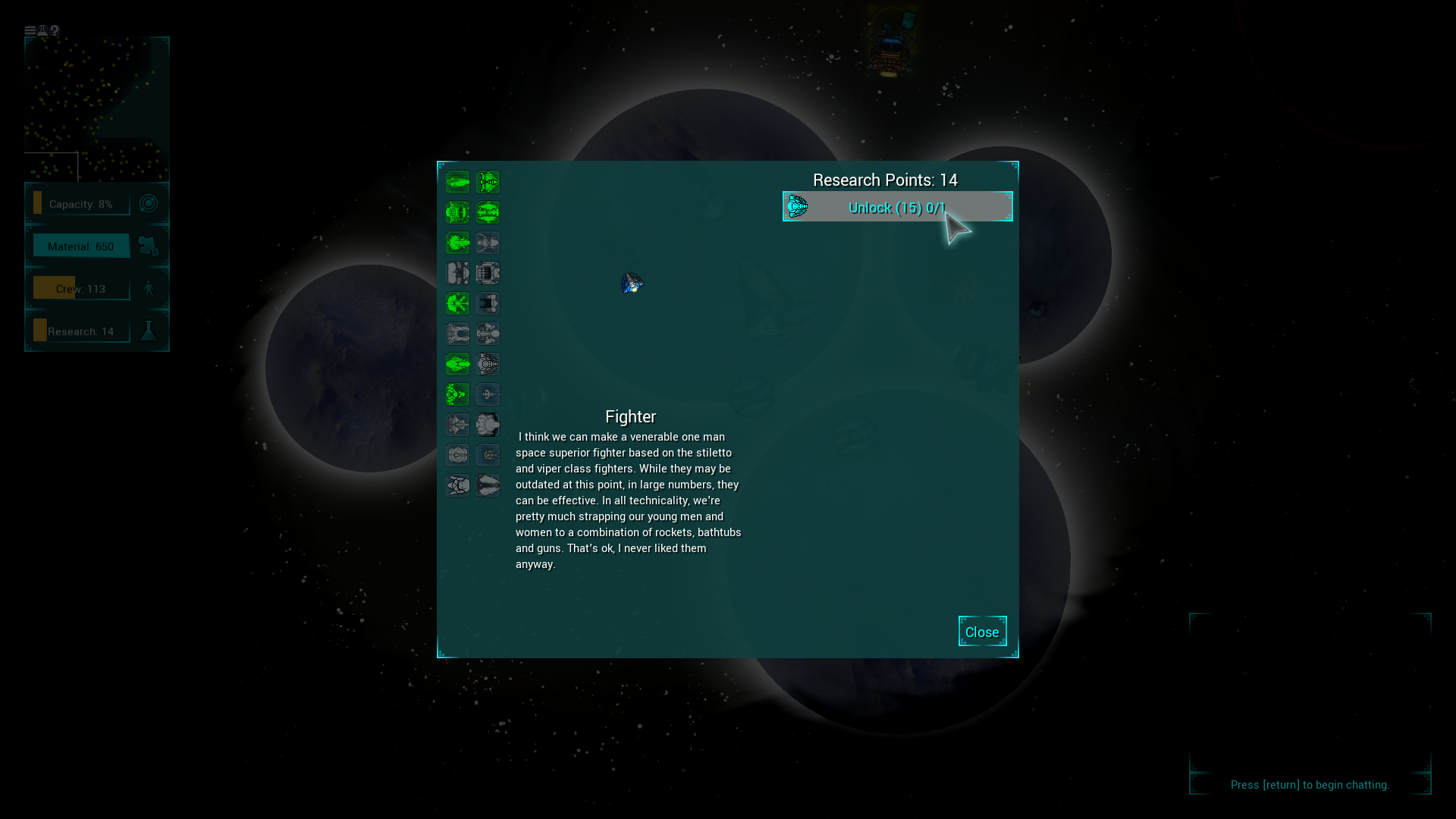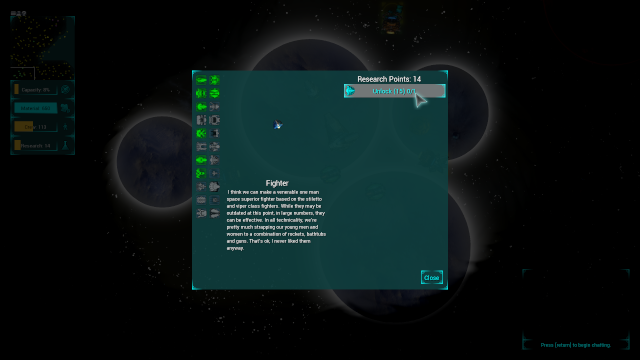 RogueCraft Squadron is a fast paced real-time strategy space adventure with roguelike elements. Play as a squadron commander fighting against a hostile alien race; collecting resources, researching new ships, and building an armada as you fight to survive against overwhelming odds.